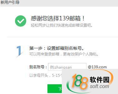 2、如果是首次登錄139mail郵箱,需要添加別名才可以使用,比如:z@139.com等。