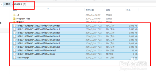5、進入目錄后,按下圖所示,依次進入文件夾,找到播放記錄文件列表,大部分以.tdl為后綴。并將其全部復制到E盤根目錄下,如圖所示: